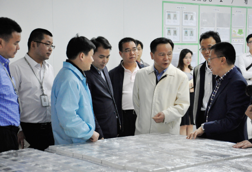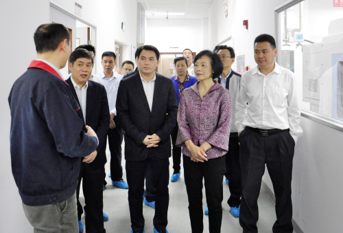 3月30日下午,徐建華來到東莞產(chǎn)業(yè)園。在長城開發(fā)園區(qū),公司黨委書記、副總裁陳朱江熱情地接待了徐建華一行,并陪同參觀最新進(jìn)駐的通訊與消費(fèi)電子事業(yè)部和國內(nèi)智能電表事業(yè)部。其中,智能電表生產(chǎn)線在廣泛推行自動化轉(zhuǎn)型升級的成果引起了徐建華的注意。陳朱江介紹說,這條電表組裝生產(chǎn)線的自動化程度處于業(yè)內(nèi)領(lǐng)先水平,通過一系列自動化設(shè)備更新,優(yōu)化工藝技術(shù)流程,可將工人數(shù)量降低60%,從而減少企業(yè)人力成本,提高了勞動生產(chǎn)率和產(chǎn)品優(yōu)質(zhì)率。徐建華對此表示肯定,并稱這符合東莞“機(jī)器換人”扶持政策,要求有關(guān)部門協(xié)助企業(yè)進(jìn)行申報(bào)。